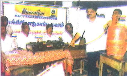 "செயல்விளக்க பயிற்சி துகாப்யாம் காட்டுமன்னார்கோவில் அருகே உள்ள திருமூலஸ்தானம் கிராமத்தில் நடந்த சியாஸ் சிலிண்டர் பயன்படுத்தும் முறைபற்றி பாரத் கியாஸ் உரிமையாளர் அறிவுராஜா செயல்விளக்கம் செய்து காட்டிய போது எடுத்த படம் . அருகில் தாசில்தார் ரெங்கநாதன் , பேரூராட்சி மன்ற தலைவர் கனோசமூர்த்தி , துளைன தலைவர் மகாலட்சுமி முருகையன் ஆகியோர் உள்ளனர் ."